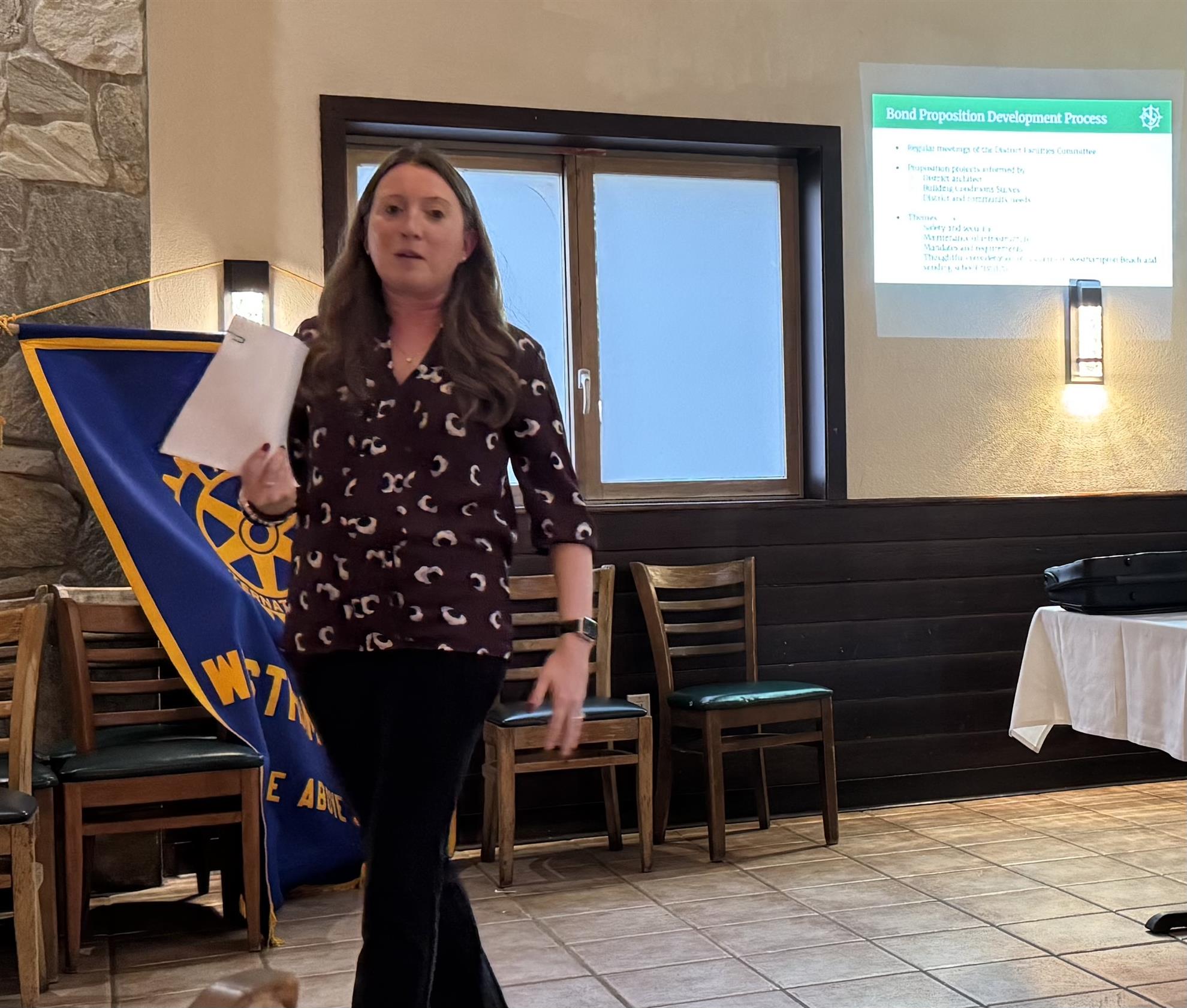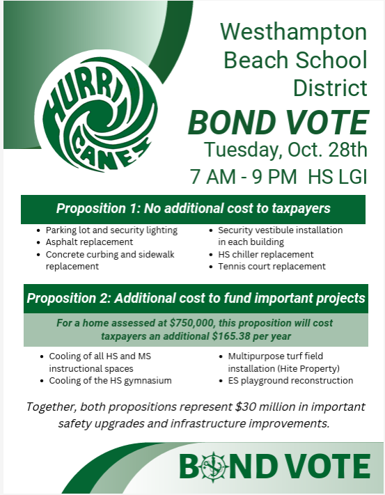 Our first speaker was Carolyn J Probst, Ed.D, Superintendent of Schools for Westhampton Beach. She spoke about the upcoming bond vote, explaining the details and plans for the campus. There are two parts to the vote, both very important for our students. Proposition 1 replaces expiring debt at no additional cost to taxpayers. Proposition 2 represents new debt to fund cooling and fresh air ventilation, elementary school playground and a multipurpose turf field at the Hite Property.